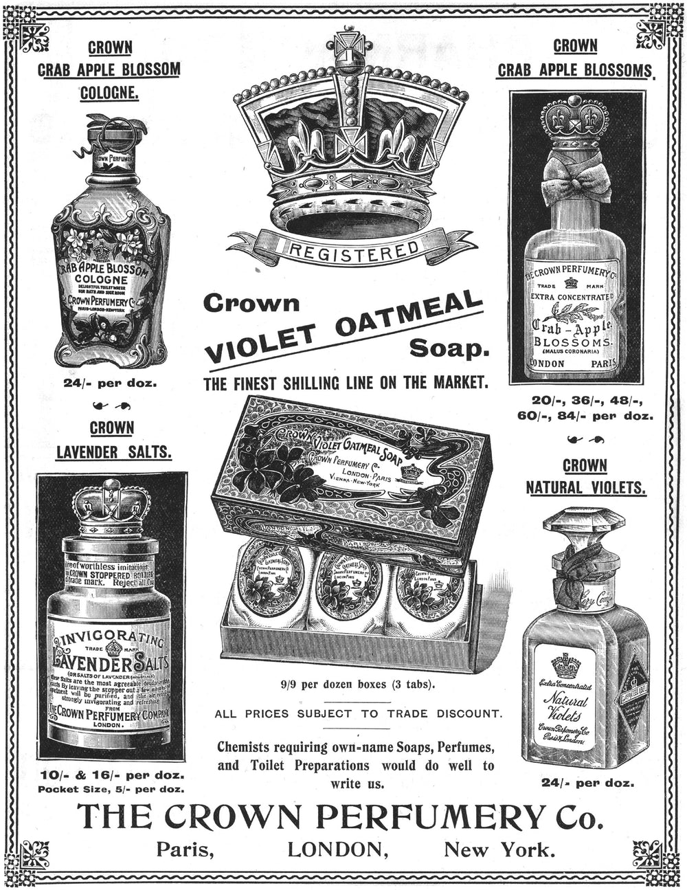 The salts were followed in 1886 by the creation of a highly concentrated perfume called Crab Apple Blossom, which marks the start of the company's perfume history. Other scents soon followed, and quickly gained the attention of Victorian high society.
