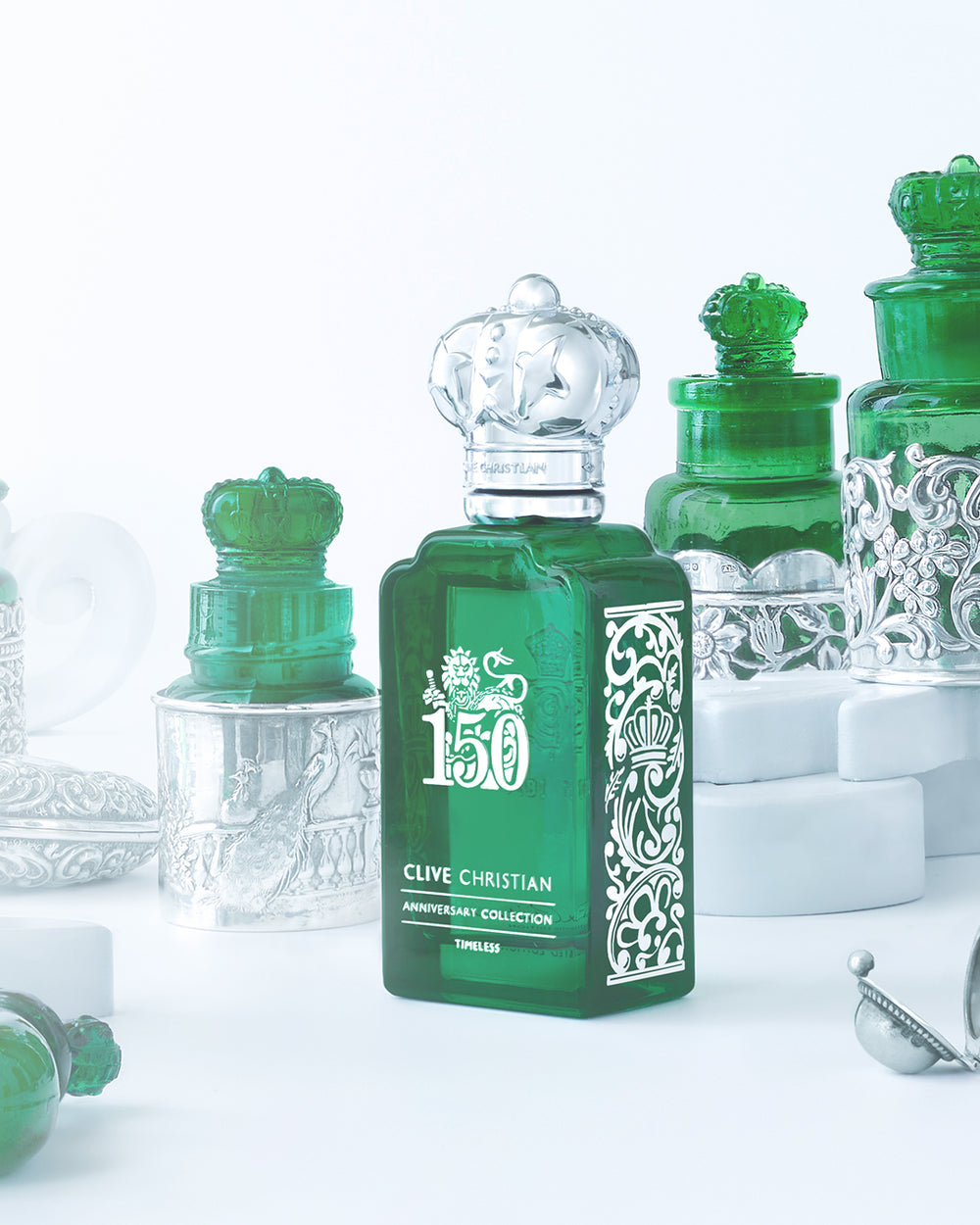 The Anniversary Collection will comprise two limited edition perfumes: Timeless and Contemporary. Wrapped in the signature green of the Crown Perfumery Company, with ornate silver decoration, the new scents will express the heritage of Clive Christian as well as celebrating its prestigious status as a leading perfume house.