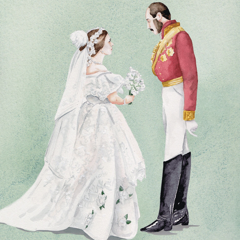 Victoria in turn adorned herself in orange blossom at their marriage, by wearing a unique orange blossom inspired headdress at their wedding on February 10th 1840 in St James's Palace chapel.