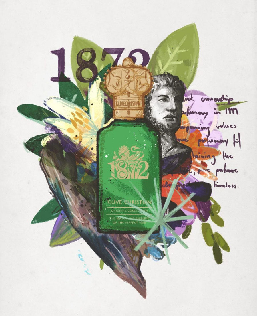 Much like the feminine edition of this perfume pair, the emerald green is a mark of the original bottles from The Crown Perfumery. Queen Victoria recognised the brands contribution to British excellence and the two perfumes titled 1872 are a brand signature that have evolved with Clive Christians history.