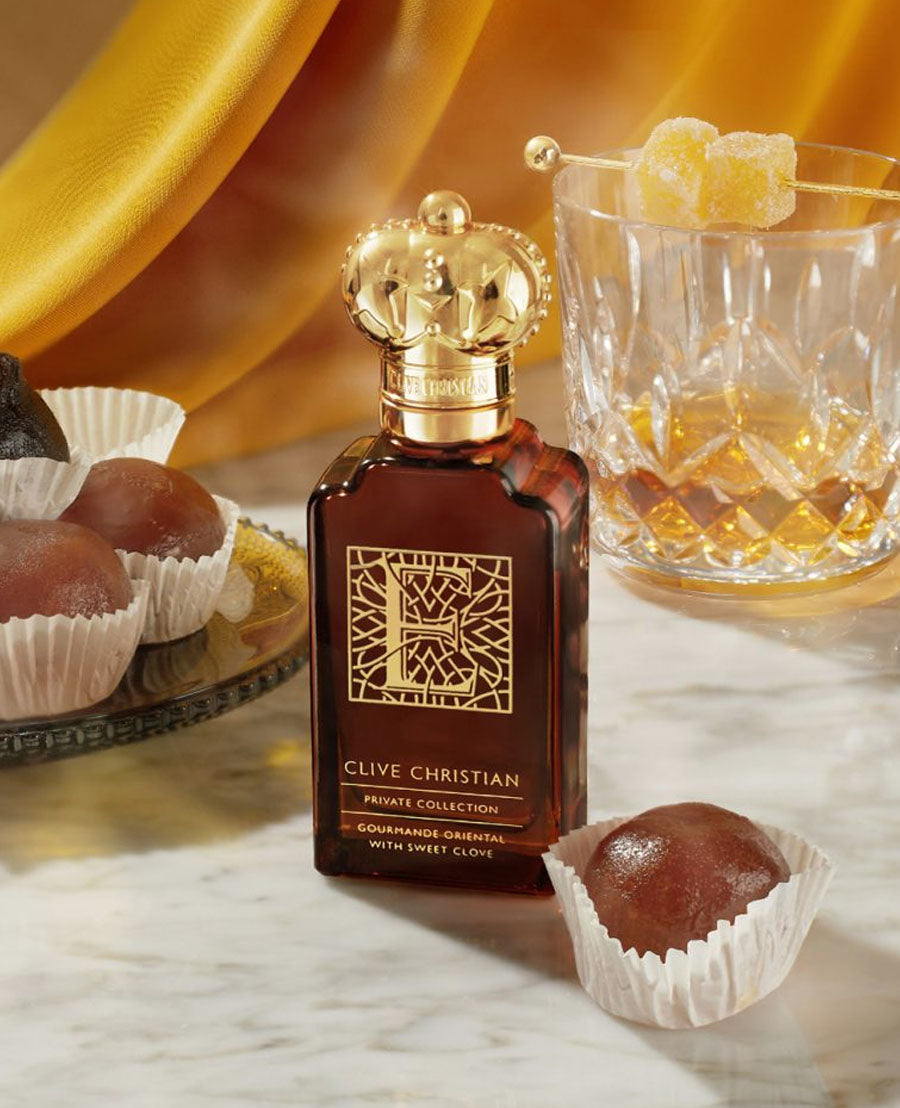 Clive Christian's E Gourmande Oriental fuses elements from the gourmande and oriental families to create a distinct fragrance, balancing rich sweetness with a fresh energy that lingers on the skin.