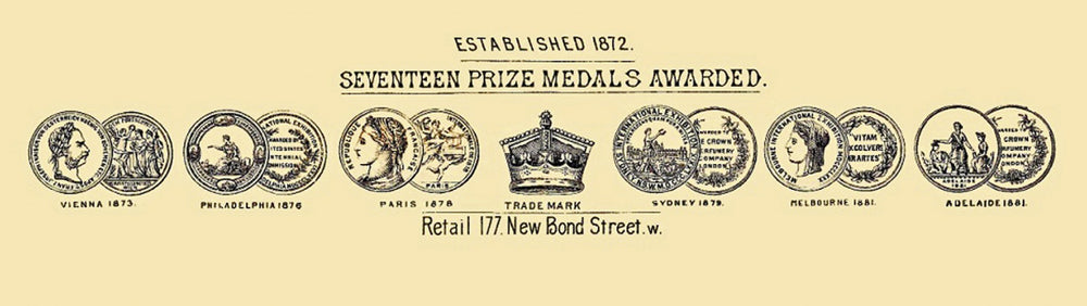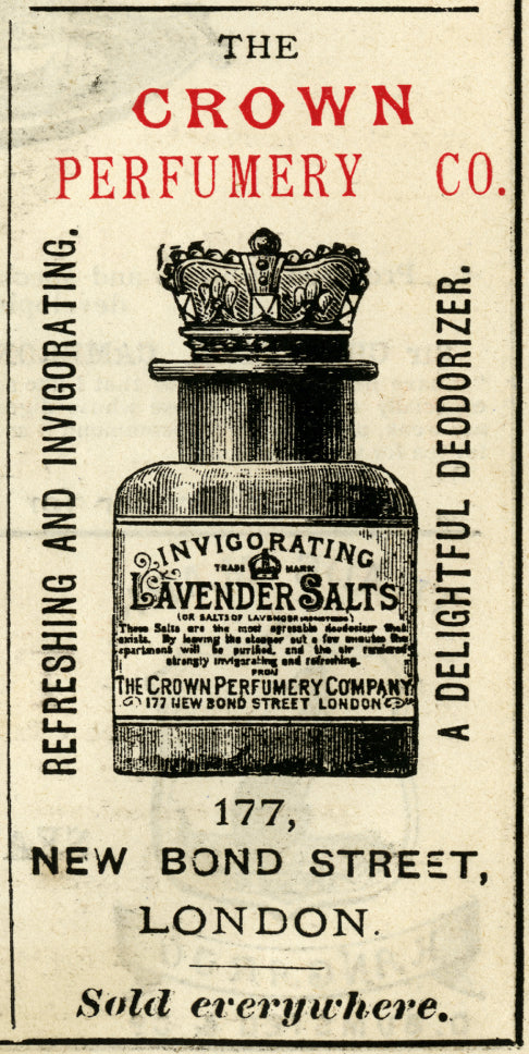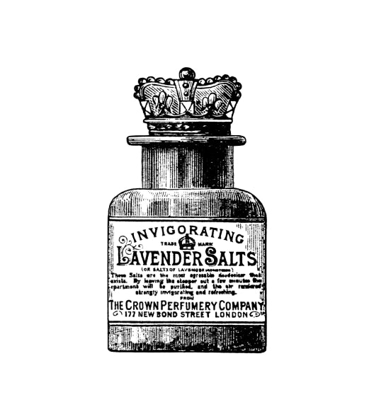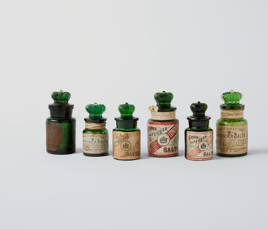 Thomson created his iconic Crown Lavender Salts, using the finest natural lavender, to revive women who were prone to fainting due to the sheer tightness of their corsets. A mere five years later this luxurious necessity was selling 300,000 units a year. Crown Lavenders Salts were placed in round, emerald green glass bottles with the famous crown shaped stopper.