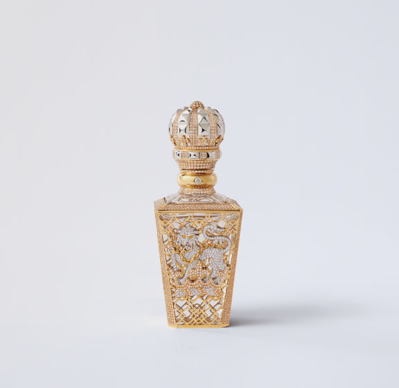 In 2005 a true masterpiece was created, the Passant Guardant. A crystal bottle with 24 carat gold lattice work, over 2000 individually set diamonds, two yellow diamonds and a pink diamond. This bottle, designed to hold a single ounce of the houses magnum opus No1 Masculine in a pure perfume form was recognised by the Guinness book of world records as the world’s most expensive perfume, a title the house still holds today.
